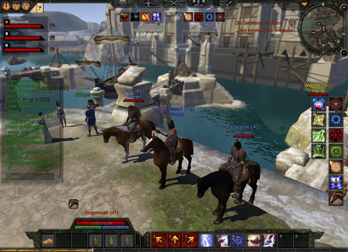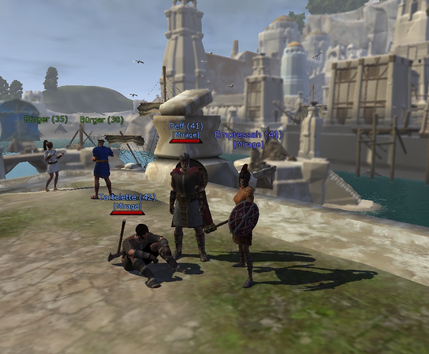 | Quote (Fuff) The game seems little bit gray Yep, it looks a little bit grey because my graphic settings were at minimum, my PC cannot do it with higher settings Quote (Fuff) haha...are you all warriors? Even little Ana? No, not all of us are warriors Deffie and Tart are warriors but different kinds - Dark Templar and Conqueror, and I am... a healer . My healer is 100 times better than my mage in AL hihi